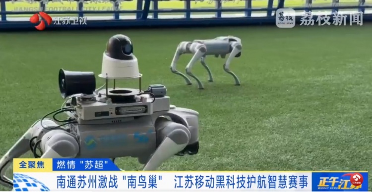 据悉,在体育场馆附近,一架系留式无人机准备就绪,搭载了最新型便携式5GA基站,可灵活覆盖半径1公里区域。比赛期间,还有机器人、机器狗将与现场观众互动,还能"驻守"周边要道,引导车流、调度泊位。