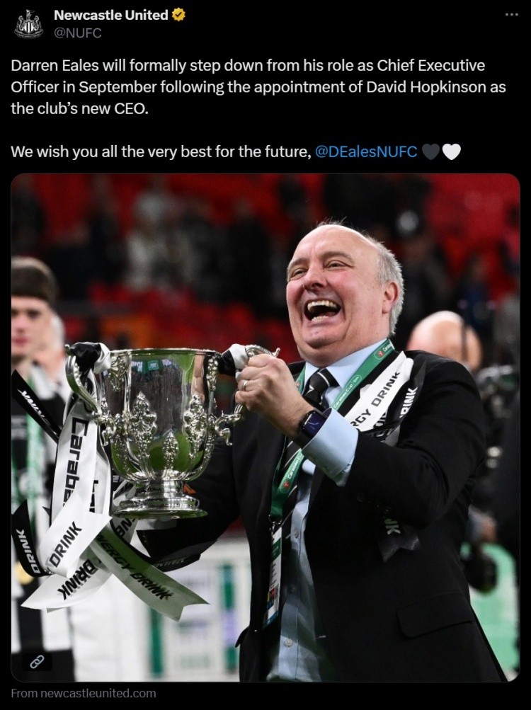 纽卡在去年9月时宣布,达伦-伊尔斯因健康问题将离任,但在继任者被任命之前,他将继续领导俱乐部的执行团队。